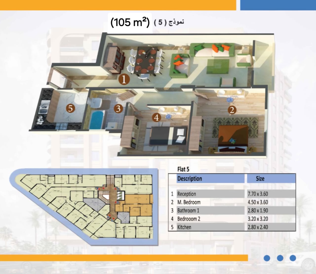 5 السابع 105 م² 1.855.000 2.183.000 328.000 - - كاش