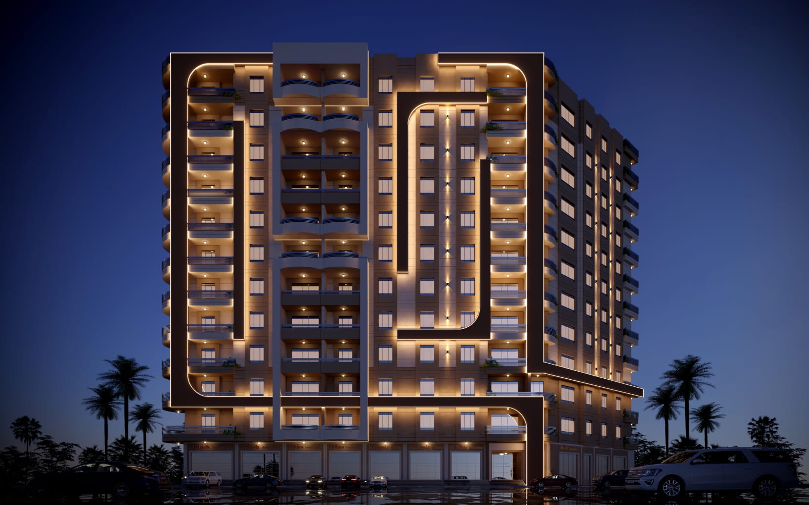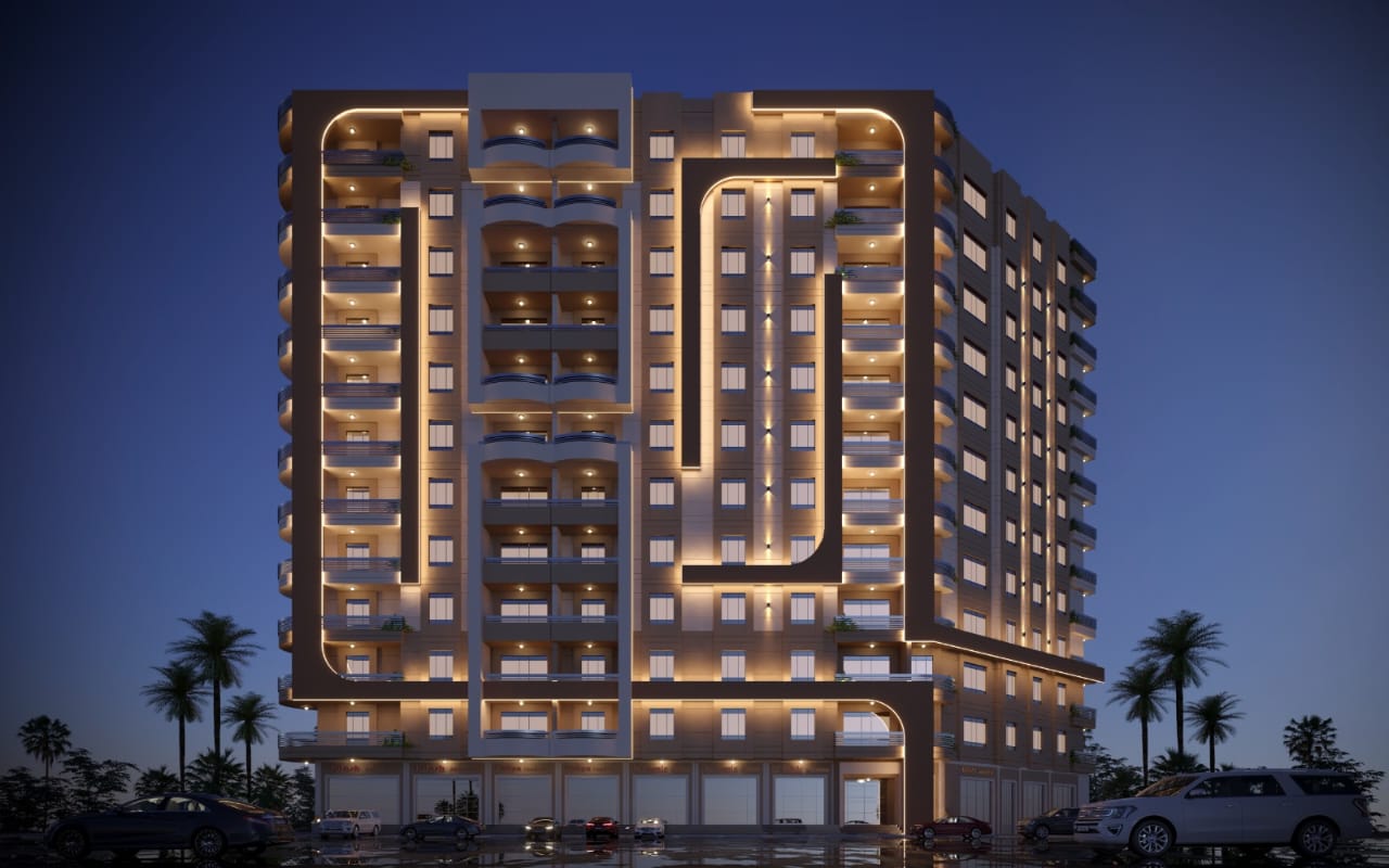 • عدد الأدوار الإجمالي = بدروم + أرضي + 11 دور متكرر + دور روف . عدد الشقق الإجمالي = 66 ( 6 شقق بكل دور ) . تسليم الوحدات من الداخل نصف تشطيب ( مالم يذكر غير ذلك) . .